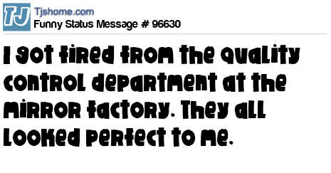 X I got fired from the quality control department at the mirror factory. They all looked perfect to me.