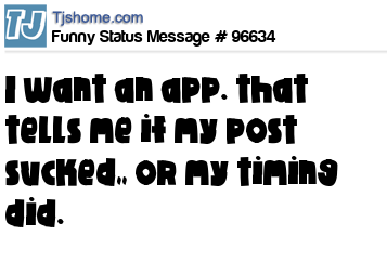 X I want an app. that tells me if my post sucked,, or my timing did.