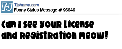 - # 191473 I got pulled over again. The cop said "I'm going to need to see your license and registration." I said "You guys seriously need to get a grip. One day you take my license and the next day you ask to see it."