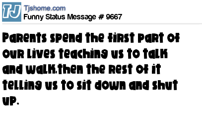 - # 37768 Children: You spend the first 2 years of their life teaching them to walk and talk. Then you spend the next 16 years telling them to sit down and shut up.