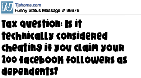 X says Tax question: Is it technically considered cheating if you claim your 200 facebook followers as dependents?