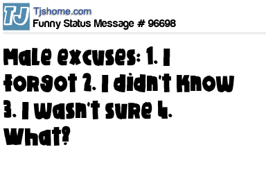 X Male excuses: 1. I forgot 2. I didn't know 3. I wasn't sure 4. What?