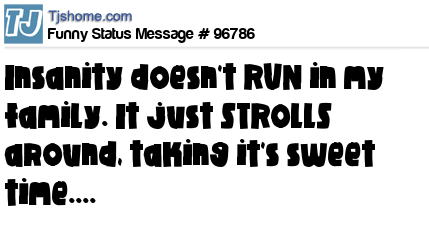 X says Insanity doesn't RUN in my family. It just STROLLS around, taking it's sweet time....