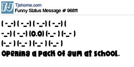 X is ( -_-) ( -_-) ( -_-) ( -_-) ( -_-) ( -_-) (O.O) (-_- ) (-_- ) (-_- ) (-_- ) (-_- ) (-_- ) Opening a pack of gum at school.