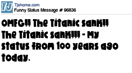 X OMFG!! The Titanic sank!! The Titanic sank!!! - My status from 100 years ago today.