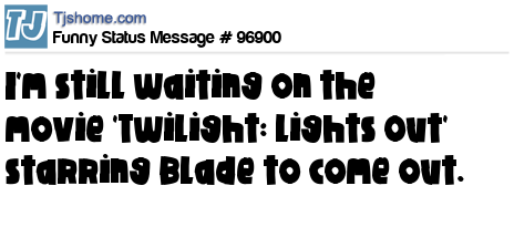 X I'm still waiting on the movie 'Twilight: Lights Out' starring Blade to come out.
