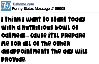 X  I think I want to start today with a nutritious bowl of oatmeal,,, Cause it'll prepare me for all of the other disappointments the day will provide.