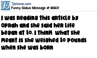 X i was reading this article by Oprah and she said her life began at 50, I think what she meant is she weighed 50 pounds when she was born