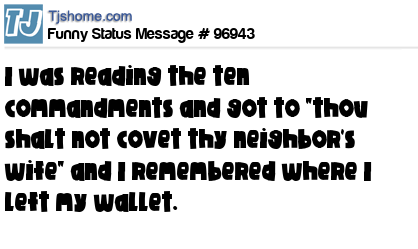 X I was reading the ten commandments and got to "thou shalt not covet thy neighbor's wife" and I remembered where I left my wallet.