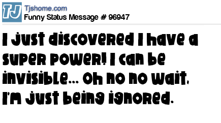 X I just discovered I have a super power! I can be invisible... Oh no no wait, I'm just being ignored.