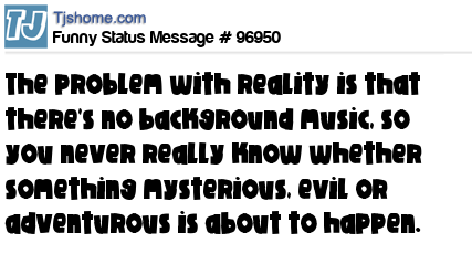 - # 94340 Sometimes the problem with reality is the lack of background music.