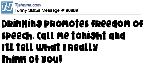 X is Drinking promotes freedom of speech. Call me tonight and I'll tell what I really think of you!