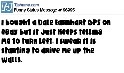 X I bought a Dale Earnhart GPS on eBay but it just keeps telling me to turn left. I swear it is starting to drive me up the walls.
