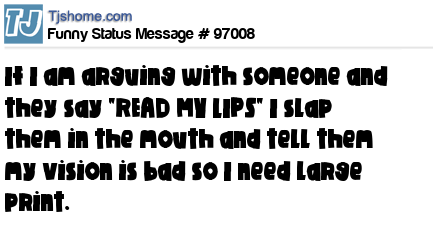 X If I am arguing with someone and they say "READ MY LIPS" I slap them in the mouth and tell them my vision is bad so I need large print.