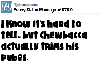 X  I know it's hard to tell,, but Chewbacca actually trims his pubes.