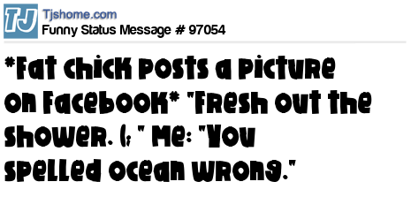 - # 104397 Fat chick posts a picture on Facebook* "Fresh out the shower (; " Me: "You spelled ocean wrong."
