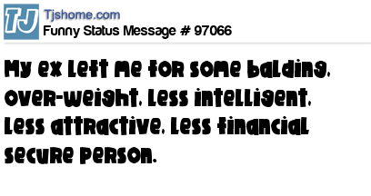 X is My ex left me for some balding, over-weight, less intelligent, less attractive, less financial secure person.