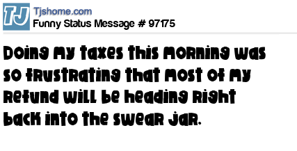 X Doing my taxes this morning was so frustrating that most of my refund will be heading right back into the swear jar.