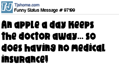 - # 44040 an apple a day will keep the doctor away; so will the lack of health insurance.