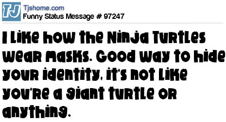 - # 126850 I like how ninja turtles wear masks. Good way to hide your identity. It's not like you're a giant turtle or anything.