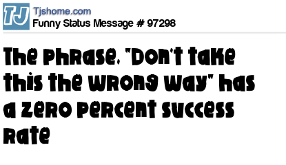 - # 91931 The phrase, "Don't take this the wrong way" has a zero percent success rate.