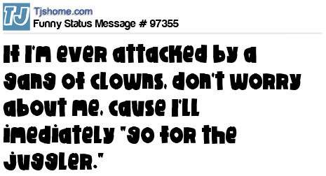 X If I'm ever attacked by a gang of clowns, don't worry about me, cause I'll imediately "go for the juggler."