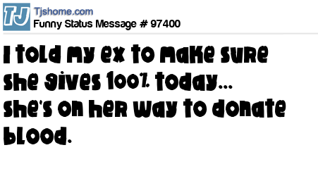 X I told my ex to make sure she gives 100% today... she's on her way to donate blood.