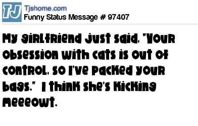- # 147654 He said "Your obsession with cats is out of control. I can't handle it anymore." She cried, "You're kicking meeeowt?"