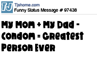 - # 67750 My mother + my father - condom = COOLEST PERSON ALIVE! :-).