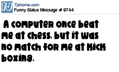 - # 69153 My computer beat me at chess, but I beat it at kickboxing