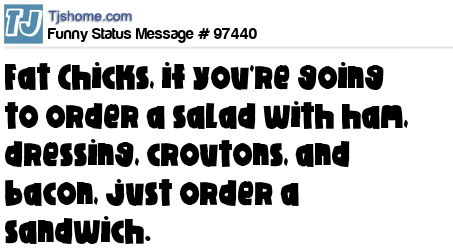 X is Fat Chicks, if you're going to order a salad with ham, dressing, croutons, and bacon, just order a sandwich.