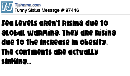 - # 98195 Sea levels aren't rising due to global warming. They are rising due to the increase in obesity. The continents are actually sinking.