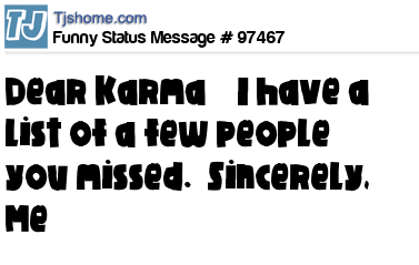 X Dear Karma – I have a list of a few people you missed. Sincerely, Me