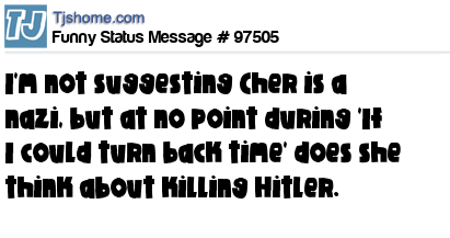 X says I'm not suggesting Cher is a nazi, but at no point during 'If I could turn back time' does she think about killing Hitler.