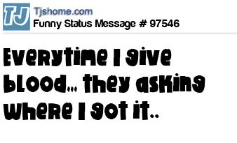 - # 104661 I gave blood for the local blood drive today. Someone's blood alcohol level is going UP!