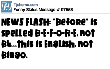 - # 83589 look people It's spelled B-E-F-O-R-E, not B4... we speak English, not bingo