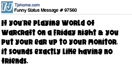X is If you're playing World of Warcraft on a Friday night & you put your ear up to your monitor, it sounds exactly like having no friends.