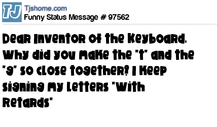X is Dear Inventor of the Keyboard, Why did you make the "t" and the "g" so close together? I keep signing my letters "With Retards"