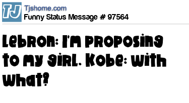 X is Lebron: I'm proposing to my girl. Kobe: with what?