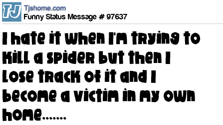 - # 97437 I hate it when I'm trying to kill a spider but then I lose track of it and I become a victim in my own home