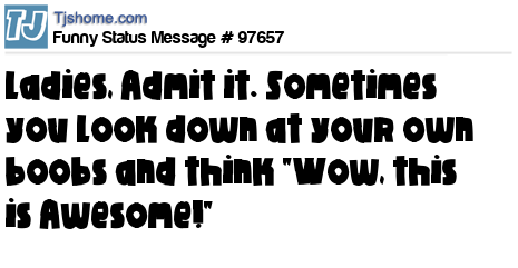 X is Ladies, Admit it. Sometimes you look down at your own boobs and think "Wow, this is Awesome!"