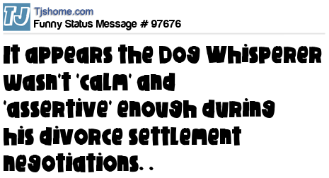 X says It appears the Dog Whisperer wasn't 'calm' and 'assertive' enough during his divorce settlement negotiations. .