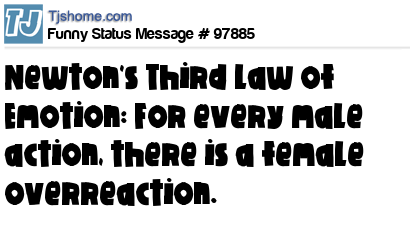 - # 147930 .... Hmmmm .... I think I just discovered Newton’s third law of Emotion: ..... "For every male action, there is an equal and opposite female overreaction."