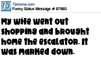X My wife went out shopping and brought home the escalator. It was marked down.