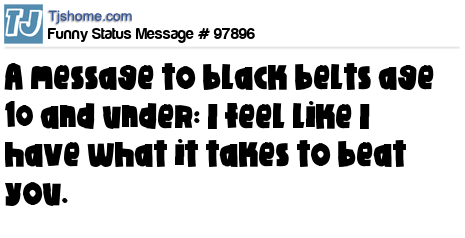 X A message to black belts age 10 and under: I feel like I have what it takes to beat you.