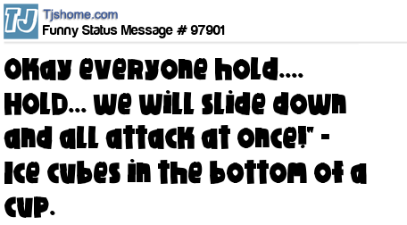 X is Okay everyone hold.... HOLD... we will slide down and all attack at once!" - Ice cubes in the bottom of a cup.