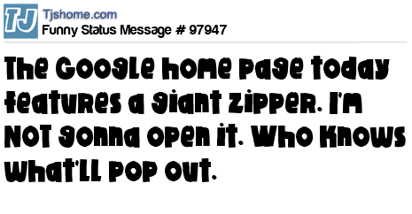 X The Google home page today features a giant zipper. I'm NOT gonna open it. Who knows what'll pop out.