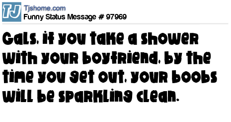 X says Gals, if you take a shower with your boyfriend, by the time you get out, your boobs will be sparkling clean.