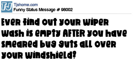 X Ever find out your wiper wash is empty AFTER you have smeared bug guts all over your windshield?