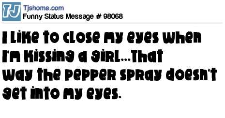 - # 164438 When I go in to kiss a girl, I always close my eyes. Ive just learned from experience, if my eyes are open, more pepper spray gets in them.